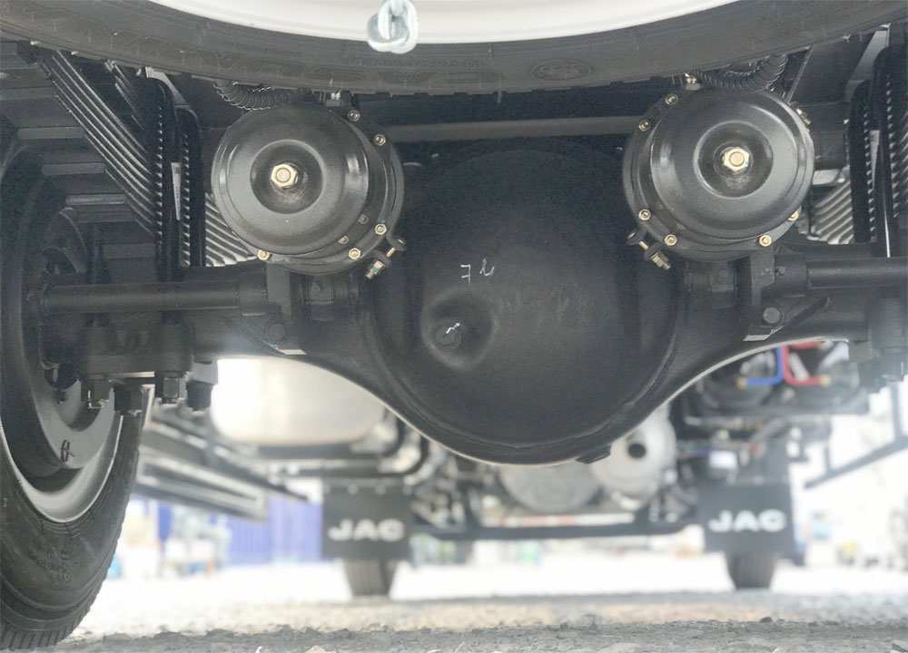 Xe tải Jac N900 Plus E5 sử dụng cầu trục áp dụng kỹ thuật giảm trọng lượng, vỏ cầu chỉnh thể, gia tăng lực xoắn, bánh răng được chế tạo bằng kỹ thuật chính xác cao, hiệu suất truyền tối đa của trục sau là ≥97% và hiệu suất truyền trung bình là ≥95%.