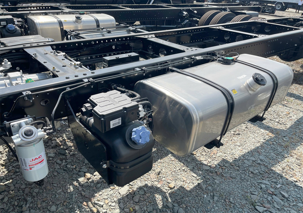 Xe tải JAC N900 Plus E5 thiết kế hệ thống khung gầm Chassis được sản xuất bằng công nghệ dập nguội áp suất cao tạo lực ép 6000 tấn, dập 1 lần thành hình. Diện tích cắt ngang lớn, chịu tải tốt, ổn định, khả năng chống đổ nghiêng được nâng cao.