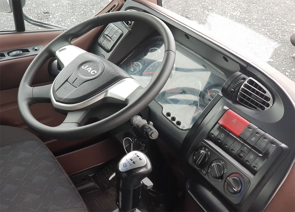 - Hệ thống lái: Loại cơ cấu lái trục vít êcu bi (hãng JAC) có trợ lực lái bằng thủy lực